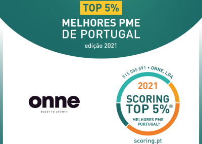 A onne foi reconhecida com o selo de Top 5% das Melhores PME em Portugal, tendo por base as contas anuais e analisados os principais rácios de gestão económico-financeiros referentes ao ano de 2020, cumprindo assim os requisitos para a obtenção deste prestigiado prémio.